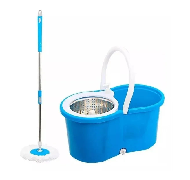 Balde Mopa 360° con Centrífuga Haz la limpieza más fácil y eficiente con nuestro Balde Mopa 360° con Centrífuga. Este sistema de limpieza te permite limpiar cualquier rincón de tu hogar sin esfuerzo, gracias a su tecnología de giro y su práctico diseño con Rotación 360° Cabezal de mopa que gira 360°, permitiendo limpiar fácilmente esquinas y espacios de difícil acceso. Sistema de Centrífuga Balde con centrifugado integrado que permite escurrir el agua y el exceso de humedad de la mopa sin necesidad de ensuciarte las manos .Mopa de Microfibra Paños de microfibra súper absorbentes que capturan la suciedad y el polvo con mayor eficacia, además de ser reutilizables y fáciles de lavar. Fácil de Usar y Transportar Diseño ergonómico con asas que facilitan el transporte del balde y un pedal que activa el sistema de centrifugado. Ahorro de Agua y Tiempo Con el sistema de centrifugado, utilizas solo la cantidad de agua necesaria, optimizando la limpieza y el tiempo. ¡Limpia tu hogar de manera rápida y sin esfuerzo con nuestro Balde Mopa 360° con Centrífuga! Color: Al azar sujeto a disponibilidad